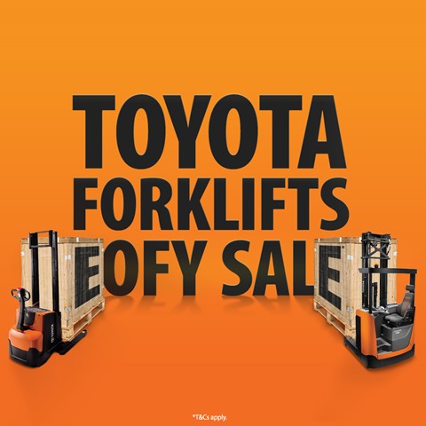 available to private buyers only. Offers subject to change without notice and whilst stocks last. Images used for illustration purposes only and not indicative of forklift models available. For more information contact your Toyota Material Handling branch. Toyota Material Handling is committed to protecting your privacy. If you wish to receive no further marketing communications from or on behalf of Toyota Material Handling, or to gain access to and correct your personal information please call 1800 812 460. Please note, Toyota Material Handling may disclose personal information to marketing communication suppliers. Please refer to our privacy policy at www.toyotamaterialhandling.com.au